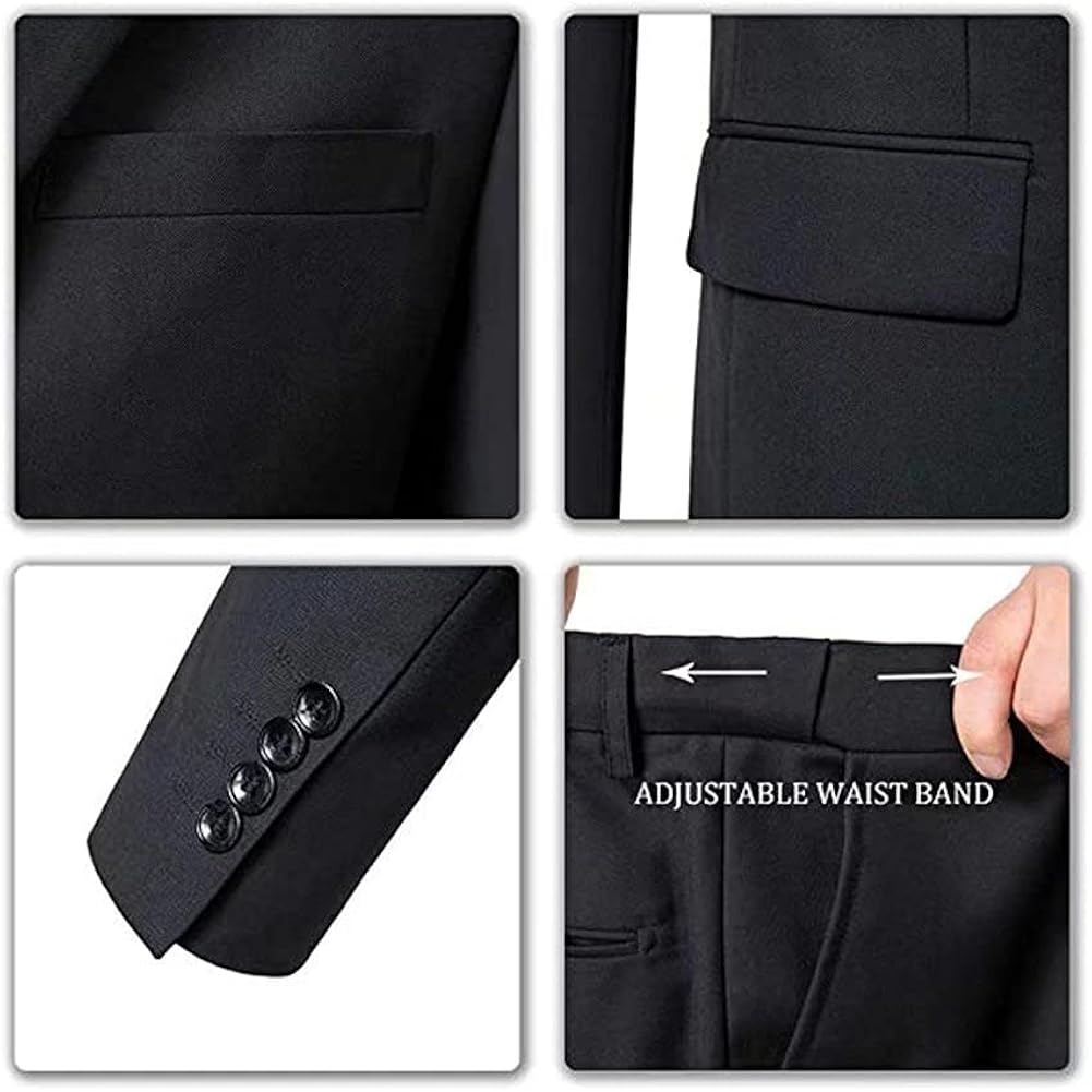 70% Polyester, 30% Viscose Button closure Dry Clean Only SUPERIOR MATERIAL-70 percent Polyester and 30 percent Viscose for outer, It is comfortable, breathable, softer, smoother, easier to wash and keep the shape. 90 percent polyester and 10 percent viscose for inner, It is breathe freely and absorb sweat. It's suitable for wedding,party, Halloween, Christmas ,prom ,daily life, business meeting, Homecoming and back to school,any fashion forward parties, any holiday ,Work and other Formal Occasions. Homecoming and back to school,Good Gift Choice for your Father ,Boyfriend,for son. Package includes:Jacket + Pants+vest,3-Piece Suit,There may be a slight color different between the photo and the finished suit. Hope you can understand this.We have a custom service (no additional charge), please give me email through amazon. SLIM FIT-This suit with full shoulder design and slim cut with 3D draping. Slim fit suits little tighter than a regular fit suit. When you put on it make you slimmer and sharp. And looks modern and handsome.