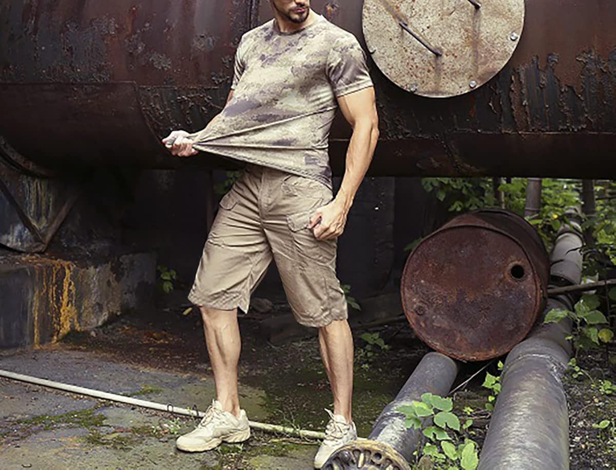 80% Polyester,20% Cotton Classic and Practical Design. Imported cargo tactical shorts.Twill cotton and polyester blender for drape effect looking and durability. Two slant big meshline pockets.Two cargo zippered thigh pockets.Two front hook and loop closed thigh pockets for smartphone.Hip pockets with reinforced edges for knife clips. Ergonomic Seat came with Reinforced Triangle Crotch. Partial Elastic Waisband for 1.5 inches adjustment. Key loops, D-Ring or carabiner compatible. Zipper fly with Button Closure.Stay comfortable and dry under the toughest conditions. Suitable for summer working and outdoor sports. Especially great for hiking, walking, fishing, climbing, camping, travelling, cycling, beach, airsoft, tactical, shooting, army training and casual daily wear.