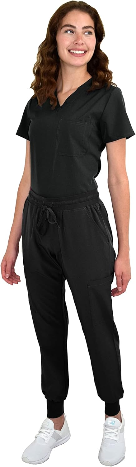 93% Polyester, 7% Spandex Drawstring closure 2-PIECE SET: Be work-ready in the affordably priced GT 4FLEX scrub set. The tuckable V-Neck uniform top offers one chest pocket and one utility pocket to help hold your gear. The jogger scrub pant features two slash hip pockets and two cargo pockets, a drawstring, and an elastic waist band that adjusts to your fit. Experience maximum comfort in this lightweight, extremely soft material. Perfect for any nurse, doctor, physician assistant, dentist, med student, and more! FUNCTIONAL YET FASHIONABLE: If you are looking to add fashion and functionality to your uniform collection, this scrub set is just for you! Pairs perfectly with joggers, the cute & trendy scrub top can be worn both tucked and untucked to add versatility to your look. Dress this jogger pant up or down, perfect for working out or lounging around on your days off. The ultimate uniform for all women healthcare professionals, the super-soft construction of this scrub set will make it your new go-to! USEFUL FEATURES: This scrub set is a must-have essential! This womens uniform set comes equipped with 6 functional pockets overall. Ideal for the medical field, the scrub top features a spacious chest pocket and a convenient utility pocket for your instruments. Also offering side vents created for increased mobility and ease of movement. Pockets for the pants are 2 functional slash hip pockets and 2 convenient utility cargo pockets. Meet all your storage needs with maximized pocket space. WASH AND WEAR: Machine Wash Safe, Easy To Clean, Dries Fast, and Shrink Resistant! Built to last, this high-quality fabric is machine washable and will hold up after multiple washings. Maintain a clean and professional look in this wrinkle resistant, non-see-through fabric. Be crease and crinkle free with little to no ironing needed! STRETCH FABRICATION: A high-quality, soft, and breathable fabric made to move when you move. Offering a 93% Polyester and 7% Spandex blend constructed with reinforced seams and stitching. Designed to make you feel comfortable, this top provides extra-durable, four way stretch material. Ensure lasting comfort and wider range of motion throughout your entire workday.