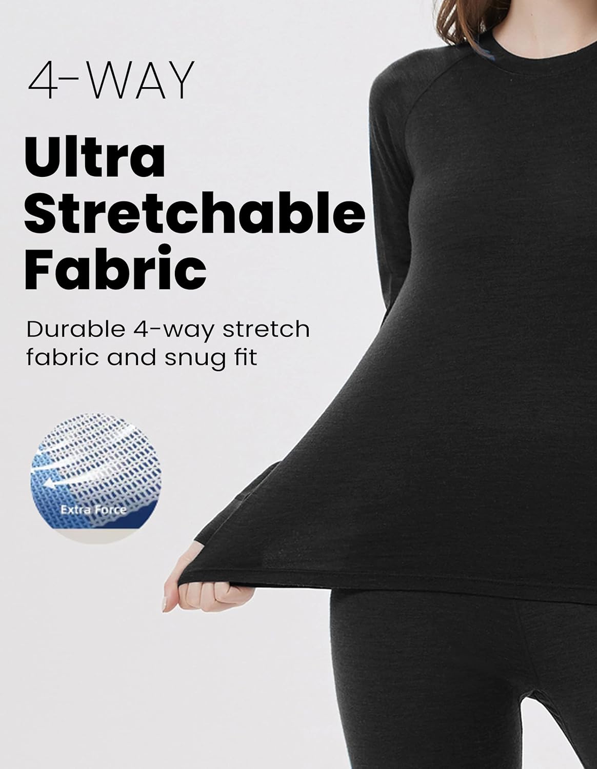 100% Merino Wool Imported Pull On closure Machine Wash MATERIAL - Made of 190g/m2 super fine knit 100% merino wool, this base layer offers great softness and elasticity. It's lightweight but enough to keep warm while skiing. ICH FREE - Merino wool has thinner, finer fibers that make it soft to the touch and cause no irritation to the skin. Also a great choice for daily wear as thermal underwear. MOISTURE WICKING - Merino wool transports sweat and moisture away from skin as a vapor.