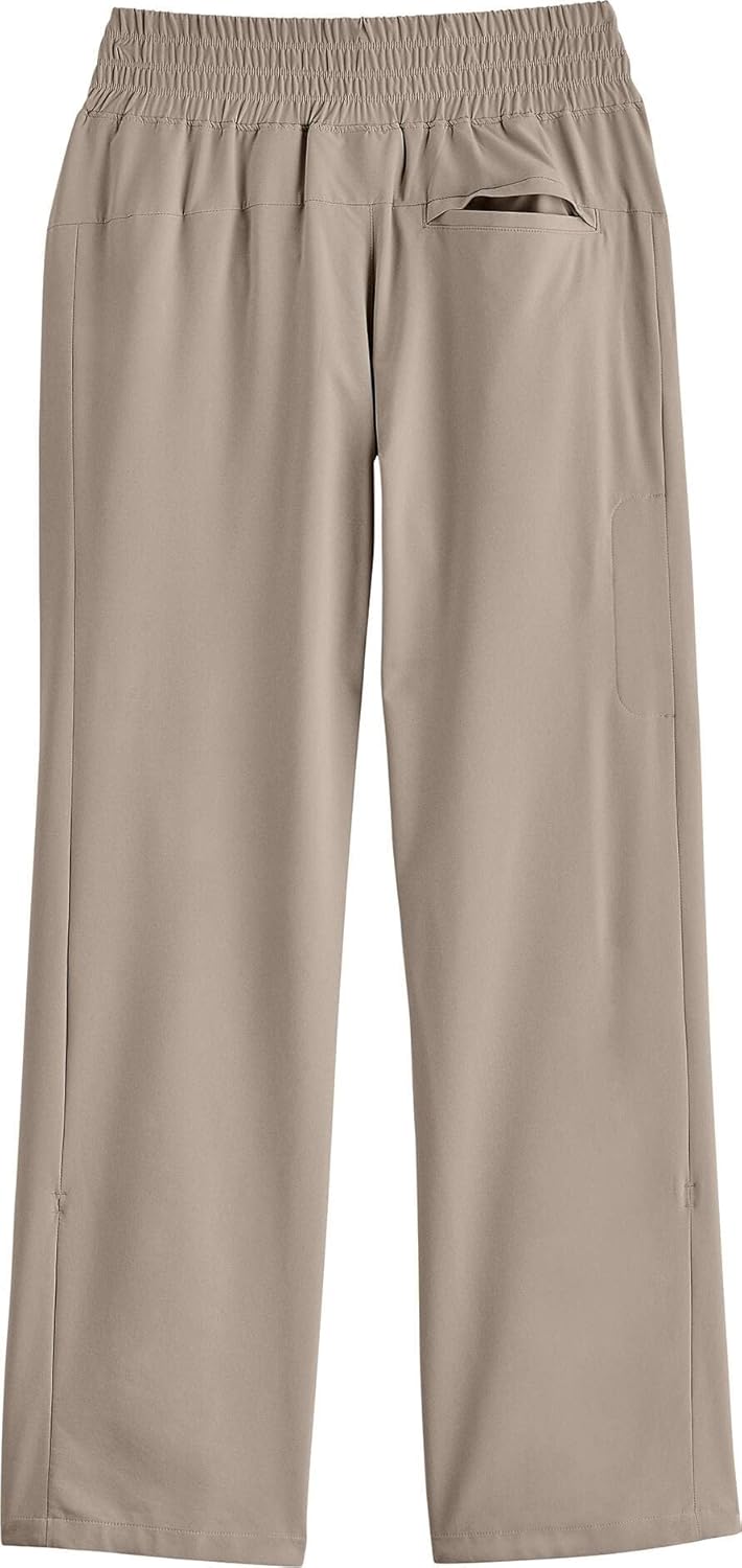88% Polyester, 12% Spandex Elastic closure UPF 50+ - blocks 98% of UVA/UVB rays FABRIC: LuxeLite fabric is feather-light UPF 50+ luxury, developed to withstand every adventure near or far. The soft, fine weave is surprisingly durable for how lightweight and breathable it feels against your skin. With a subtle 4-way stretch, moisture wicking and quick dry performance, this fabric is engineered to keep you cool and comfortable while looking polished. FEATURES: Full length, straight leg pant with tuxedo detailing down sides and small side vents, elastic waistband with flat front for smoothing effect, faux fly, front slash pockets and single back pocket; Hidden RFID-blocking zip-pocket on side seam and optional cuff secured with hidden buttons at side seams for clean look; 29 inch inseam (size medium); Hand wash, line dry; Imported RECOMMENDED FOR: when you want to pack light and travel in style - technical sun protection to take you from sightseeing to a cafe lunch NOT RECOMMENDED FOR: swimming, not chlorine and salt water resistant or water repellent