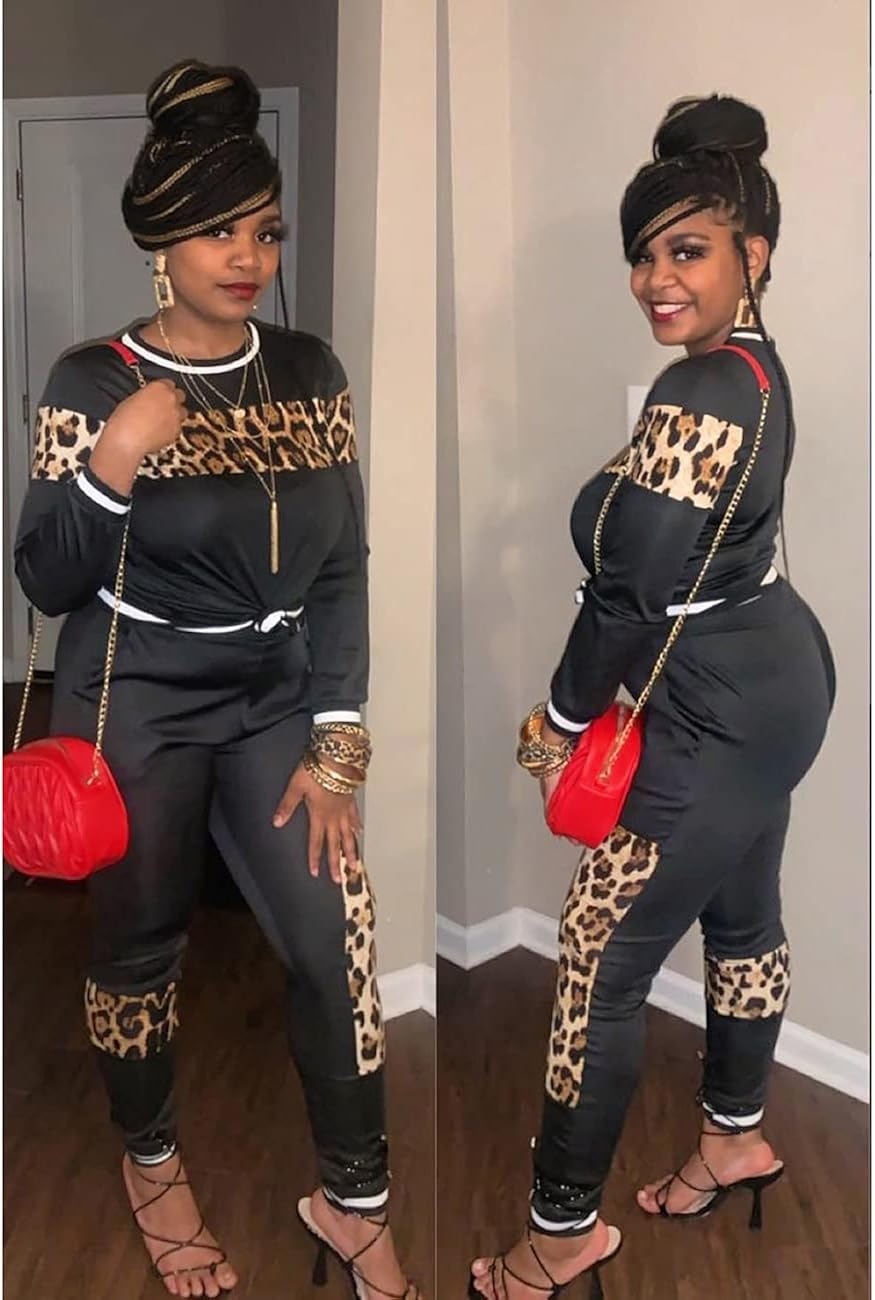 Material: Polyester and spandex. Soft, stretchy, comfortable to wear. Imported Pull On closure Machine Wash Feature: Joggers for women 2 piece set, leopard print patchwork, long sleeve pullover sweatshirts, crewneck, ribbed cuffs and hem, elastic waist skinny pants, two side pockets, women jogging suit set, cute two piece outfits, slim fit, casual style. The women track suits 2 piece set with leopard print is unique and fashion forward, can be easy to dress up or down, perfect for all ladies, making you look stylish, cute and charming. This two piece pants outfits with bodycon design perfectly hug your curves, flattering your body but not too tight, making your feel comfortable and show your beauty and sexy. Occasion: Suitable for casual, daily, leisure, going out, running, jogging, shopping, party, club, date, holiday, vacation, lounging at home and etc. Size: S, M, L, 1X, 2X, 3X. Please check the size in the picture before you are ordering, thank you. Show more