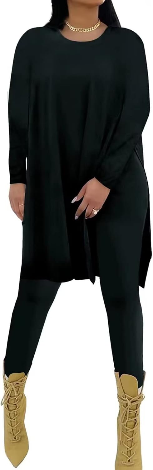 Polyester Made in the USA or Imported Hand Wash Only Features:Two piece outfits for women,Casual O neck,Split long top,Oversized long sleeve t shirts,Solid color jogging set,Biker pants sets. Material:Polyester.Soft and stretchy,Sweatsuits for women set. Occasion:Plus size pants sets outfitss great for outdoor,shopping,jogging, sports,vacation,home,dating or casual daily wear etc. Garment Care:Cold water,Hand wash or Machine wash.Plus size women 2 piece. Package Contents : 1 x Jogging outfits for women.(T shirts and Pants).