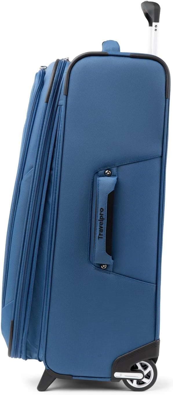 A half-pound lighter than the maxlite 4 version, this expandable 26" Rollaboard suitcase with lightweight yet durable honeycomb frame system lets you pack more with less weight. Polyester fabric with stain-resistant, water-repellant duraguard coating and ergonomic, high-tensile-strength zipper pulls provide lasting durability. High-performance inline skate wheels and lightweight yet sturdy PowerScope Lite handle with stops at 38" and 42.5" reduce wobble and ensure a smooth, easy roll. Expands up to 2" to maximize packing capacity with tapered shape to prevent tipping. Features low-profile top, side and bottom carry handles, two exterior compartments, full-length interior lid pocket, side accessory pocket and adjustable hold-down straps for packing convenience and flexibility. Limited Lifetime Coverage plus trusted companion promise, which covers the cost of repair for damage from airline or other common carrier for 1 year. Case Dimensions: 26x 18.5x 11, Overall Dimensions: 28x19x11, Weight: 7.1 lbs