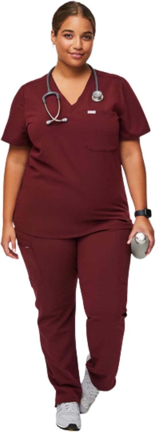 HIGH PERFORMING DESIGN — Engineered with Technical Comfort that incorporates moisture-wicking, anti-wrinkle, and Silvadur technology which provides odor protection. Feel confident wearing the FIGS Catarina women’s scrub top through these innovative design features that increases the lifespan and durability of the top. SIMPLE AND CLEAN, BUT FAR FROM BASIC — These medical scrub tops are designed with a flattering V-neck, classic fit, darted back, and side-slit hem so you will look stylish and professional without sacrificing comfort and function. PERFECT FIT WOMEN’S SCRUB TOPS — Choose your FIGS size for the best fit: The FIGS Catarina One-Pocket medical scrubs for women are available in sizes XX-Small, X-Small, Small, Medium, Large, X-Large, and XX-Large. Please review the size chart in the listing images to find your correct fit. EXPONENTIALLY MORE WEARS THAN OTHER BRANDS — FIGS scrubs are thoughtfully designed to provide an unmatched combination of comfort and technical features that give you exponentially longer-lasting scrubs. LOTS OF COLORS TO CHOOSE FROM — Available in sleek and modern colors from Black, Burgundy, Capri Blue, Graphite, Navy Blue, and Raspberry Sorbet. FABRIC AND CARE — 72% Polyester; 21% Rayon; 7% Spandex. Wash cold inside-out, tumble dry low. FIGS HELPS AWESOME HUMANS LIKE YOU — All FIGS scrubs are named after places they have donated scrubs and people they have met along the way! Show more