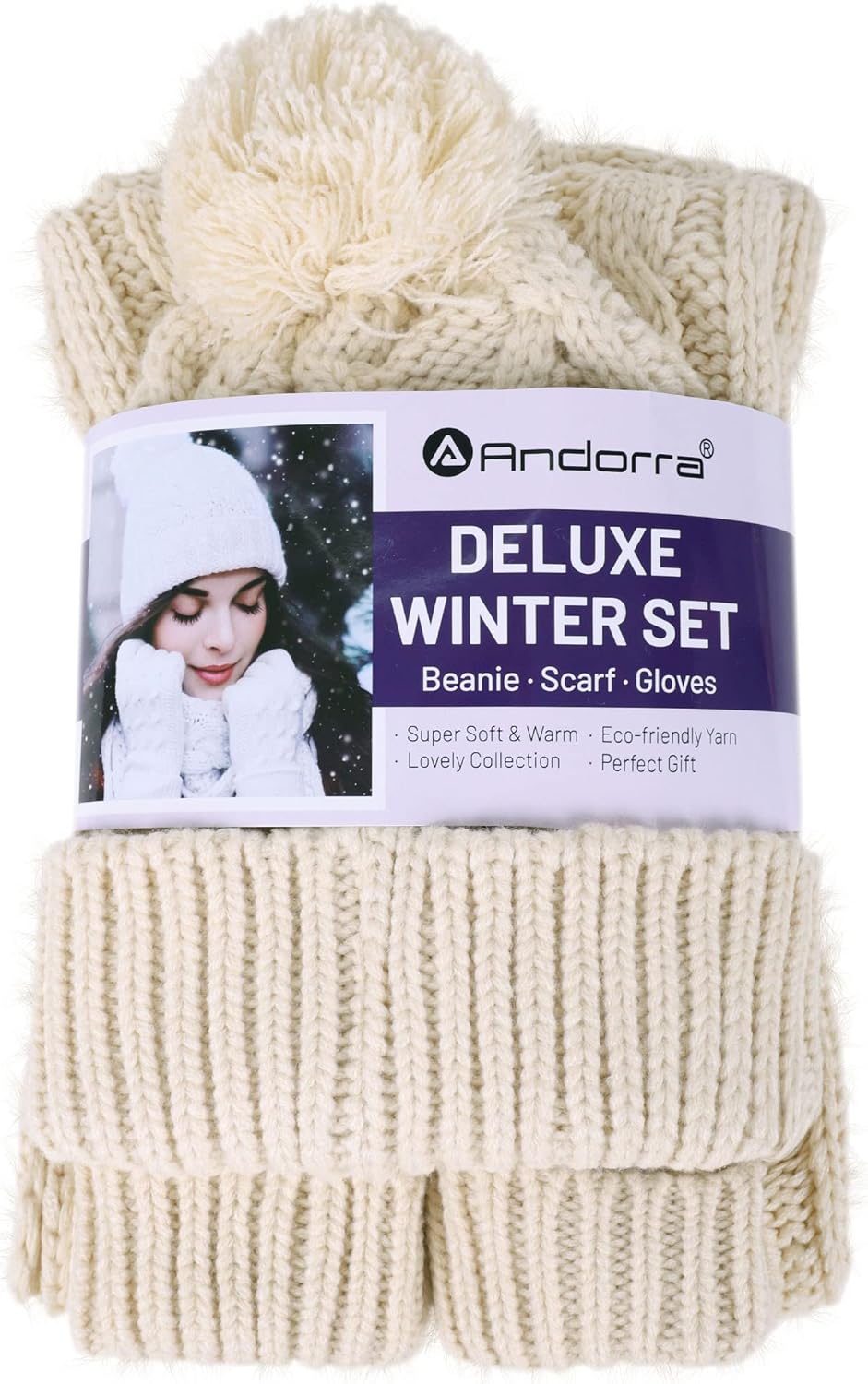 Pull-On closure Hand Wash Only Material: Winter set includes a fashionable, matching knit hat, scarf, & gloves that is great for guarding against the harsh cold seasons.The winter beanie, scarf and mitten set made of acrylic and cotton blend, what's incredibly soft, comfortable and non-irritating fabrics to give you the good feel Size: One size fits most. This scarf set can be stretched and suitable for most women Design: Multi-function 3 in 1 set,you can use it separate or together as you will.With our slouchy beanie knit hat scarf and gloves set, you will be warm, cozy and stylish Occasion: The winter set are great for outdoor activities and daily wear.Such as: skiing,snowboarding, shopping,running, camping, traveling, fishing, hiking, motorcycling and so on Gifts: 3-in-1 women beanie hat scarf and gloves set are great gifts for your parents, friends, and yourself that is both practical & stylish for this upcoming cold season