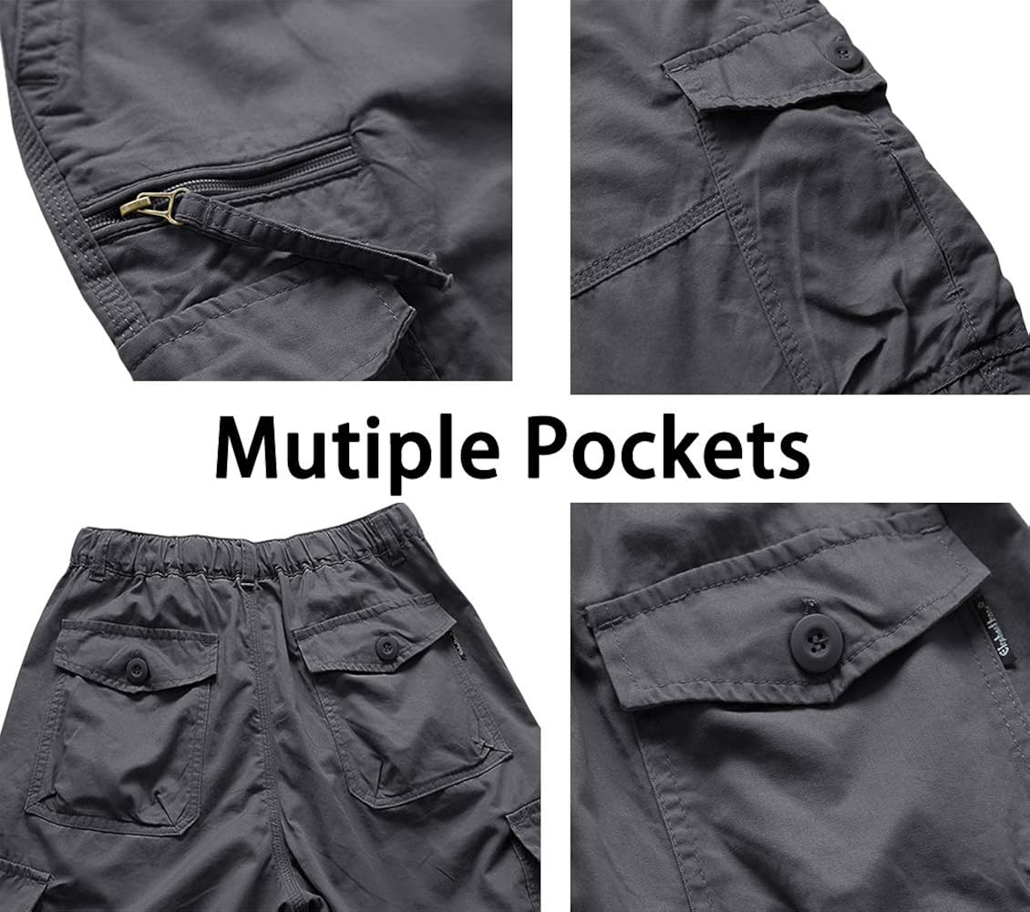 100% Cotton Zipper closure STYLE - 15-inch inseam long cargo shorts,loose fit straight leg and comfortably at wasit. DESIGN - This Cotton Cargo Shorts is very cool,and fashionable in style.High quality material ensure long lasting flexibility even sufferd heavy use.Capri-length pant features ribbed cuffs. SEVEN POCKETS - There are seven pockets.2 hand pockets on both side,2 front pockets and 2 back pockets are reinforced and secured with buttons and velcro,1 Zipper pockets on the right side of the thigh. COMFORTABLE - Made by snug cotton material for gym workout.Smooth fabric comfortable enough to put all day long,ensure you have a good wearing experience. FEATURES - Seven pcokets/Zipper Pockets/Cotton/Windproof/Elastic/Comfortable/Capri Length/High Quality/Cargo Style. PERFECT FOR - Hiking,Camping,Ridding,Jogging,Workout,Training,Bodybuilding,Walking,Fitness,Running,both outdoor indoor and casual wear.