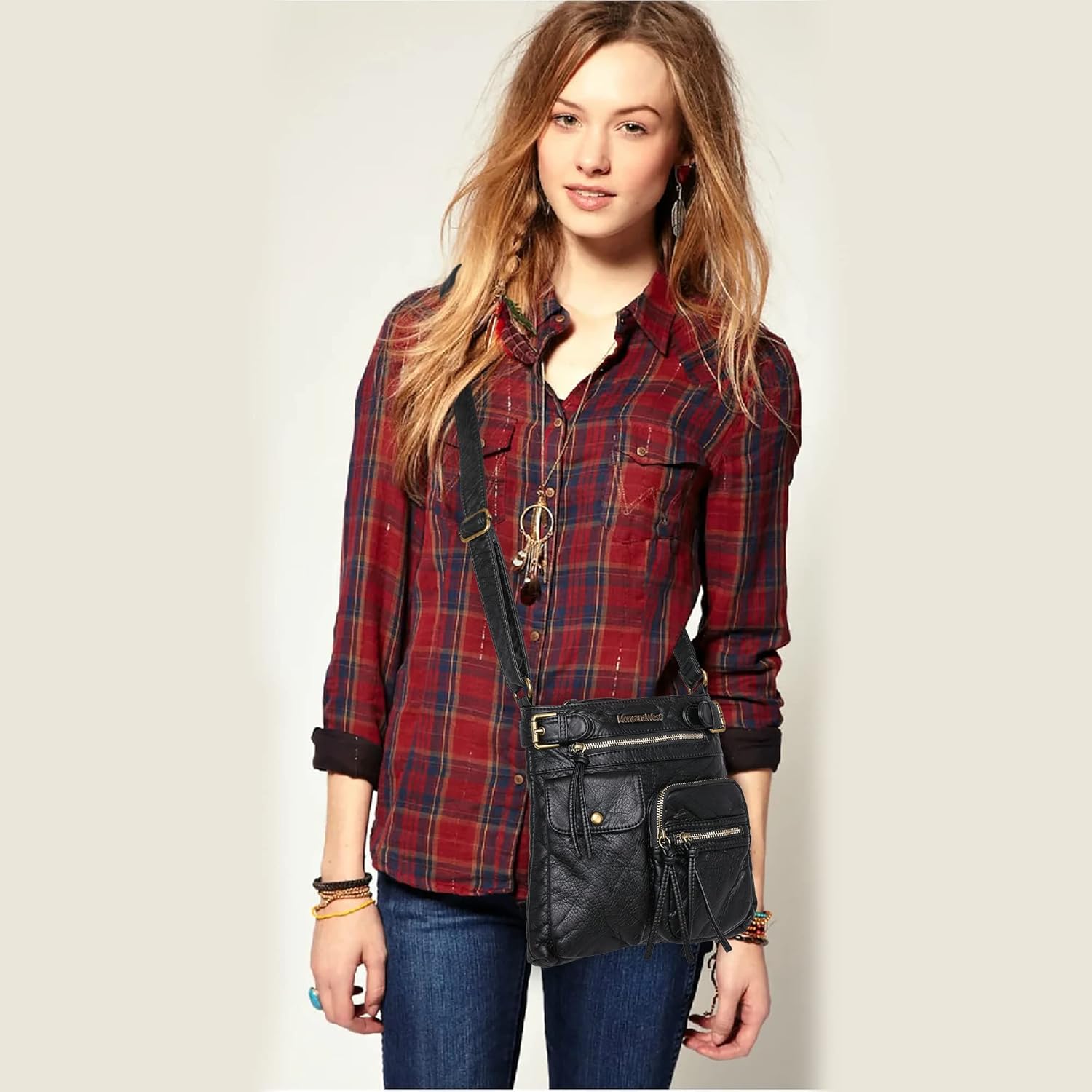 Stone Washed Leather Imported ✔️PERFECT AS A MEDIUM TRAVEL BAG: Made of soft & Lightweight ultra soft stoned washed leather, casual design went with all your outfits when traveling. The shoulder strap is adjustable.Wear it as a crossbody or throw it in your tote. Simple yet stylish! ✔️ROOMY ENOUGH &NO RUMMAGING REQUIRED:10" x 1.5" x 10" (Drop 24").The multi pocket design helps you organize your daily belongings.Perfect size for ipad,keys, phone, chapstick, cigarettes, lighter, hand sanitizer and so on. ✔️QUALITY MADE ! GREAT GIFT IDEA : The distressed color and the antique gold hardware give this shoulder purse a vintage fashion. perfect for gifting your loved ones, for any occasions. Like Valentine's day, Mother's day,Xmas,birthdays or New Year's Day. ✔️VERSATILE EVERYDAY BAG: We believe that every ladies should have at least one crossbody side purse in her designer handbag collection.Accessorize in functional, hands-free fashion, Montana West easily meet your needs. ✔️100% SATISFACTION GUARANTEE: Montana West is an American company based in Dallas. We are proud to offer this product and stand behind it. If you have any problems, Our customer service team will gladly assist you, refund or a free replacement, whichever you prefer.