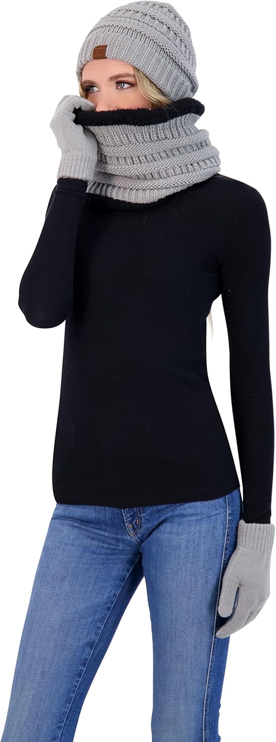 100% Soft-Spun Acrylic Imported Hand Wash Only 3 PIECE COMPLETE WINTER SET: This winter hat and scarf set includes: Beanie Hat, Scarf, and touch screen friendly gloves. Hat and scarf set suitable for men and women. Use these winter gloves and scarves for women or men to keep you warm and safe throughout those cold winters. QUALITY AND WARMTH: The winter beanie and scarf are made of 100% soft-spun acrylic with a skin-friendly fuzzy Poly Lining for Extra Warmth. Womens winter hat scarf and gloves set, will keep you cozy and warm every day and enhance the cold outdoor activities. SCREEN FRIENDLY: Special touch screen fingertips included to help you enjoy your time with your favorite touch screen device, texting easy while keeping your hands warm. ONE SIZE FITS MOST: This winter scarf set can be stretched and suitable for most people, thanks to the comfortable stretch that gives both mens and womens a custom fit. These gloves and hat set will come to great use for all adults in the family! FASHIONABLE: Beanie hat, scarf and gloves, matches with any outfit. Suitable for any cold weather winter outdoor activities like walking your dog, running, cycling, skiing, skating, sledding, traveling, hiking and so on. Enjoy womens hats and gloves.