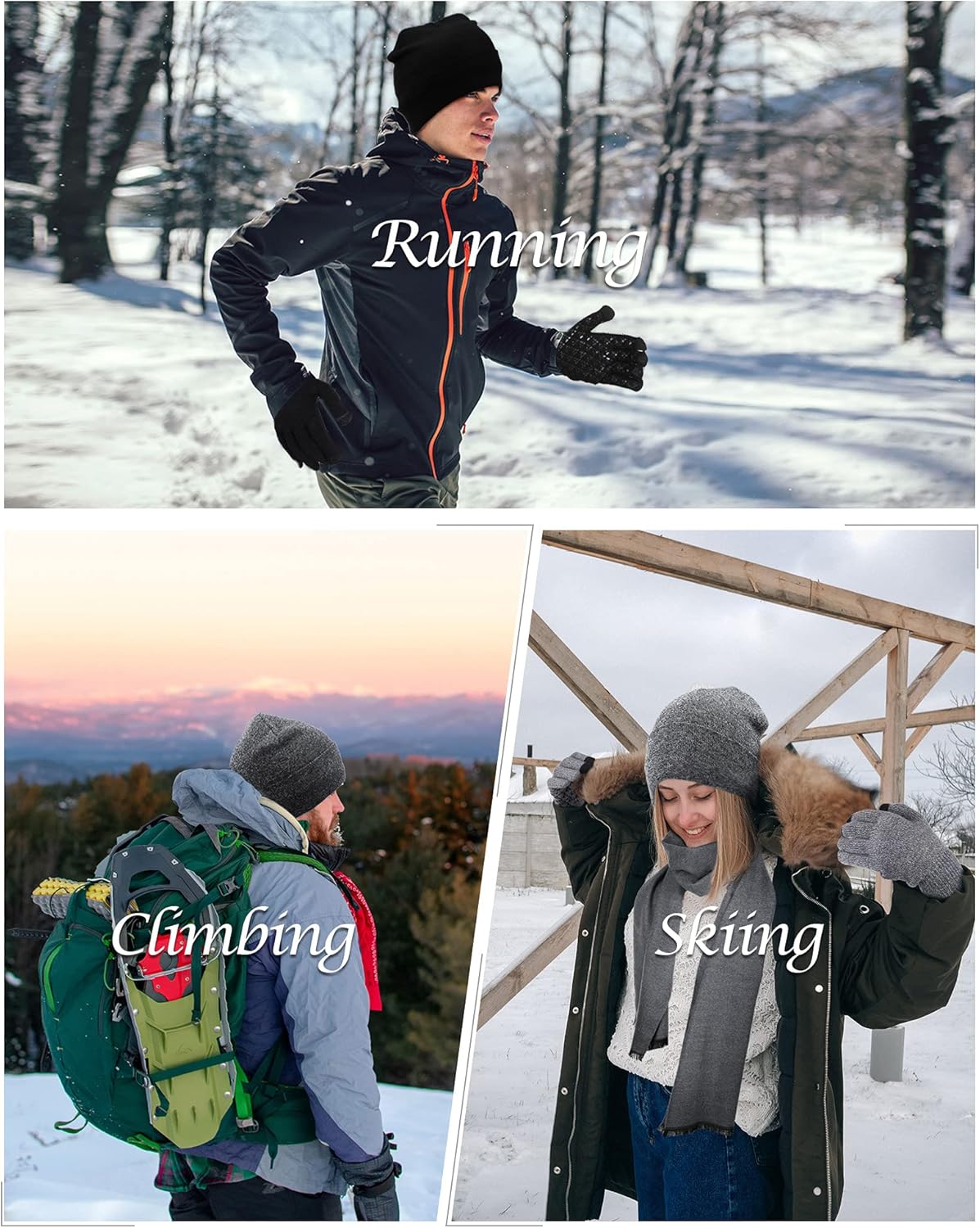 6 Pieces Women Men Winter Warm Knit Beanie Hat Touchscreen Gloves Scarf Set Fleece Lining Skull Caps Neck Scarves
