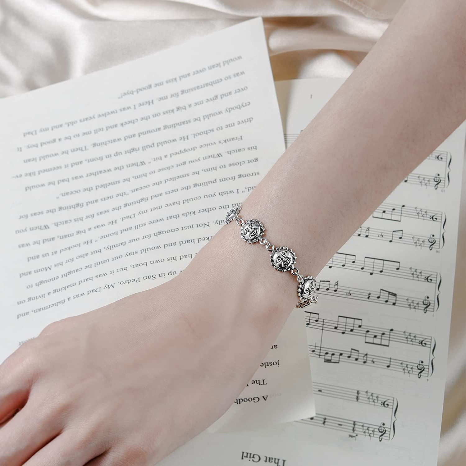 AeraVida Cute Shaman Sunny Face Links 925 Sterling Silver Bracelet | Sun Face Designs | Cute Casual Accessories | Sterling Silver Bangle Bracelets | Women's Bracelets |
