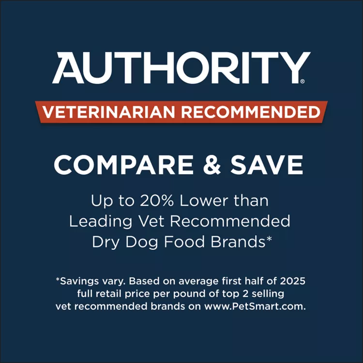 Provide your adult dog with a nutritious and delicious meal time choice by serving Authority Everyday Health Tender Blends Beef & Rice Formula Adult Dog Food. This delicious dry blend features nutrients that support digestive health, a healthy immune system, healthy skin and a shiny coat, and oral care.