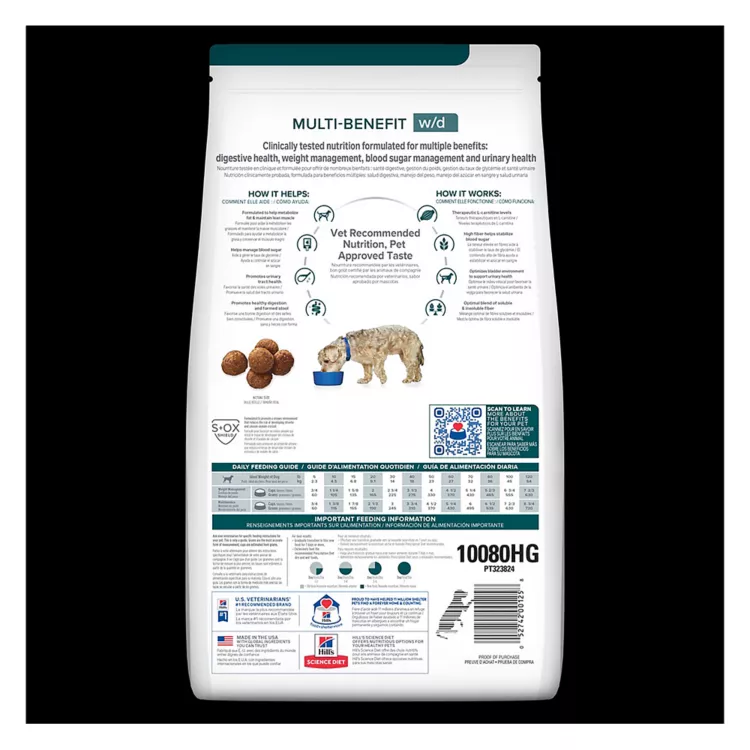 Some dogs can be more prone to gain weight than others. Hill's nutritionists veterinarians developed Prescription Diet w/d clinical nutrition especially formulated to support your dog's weight management. In fact, w/d is clinically tested nutrition for conditions that respond to fiber.