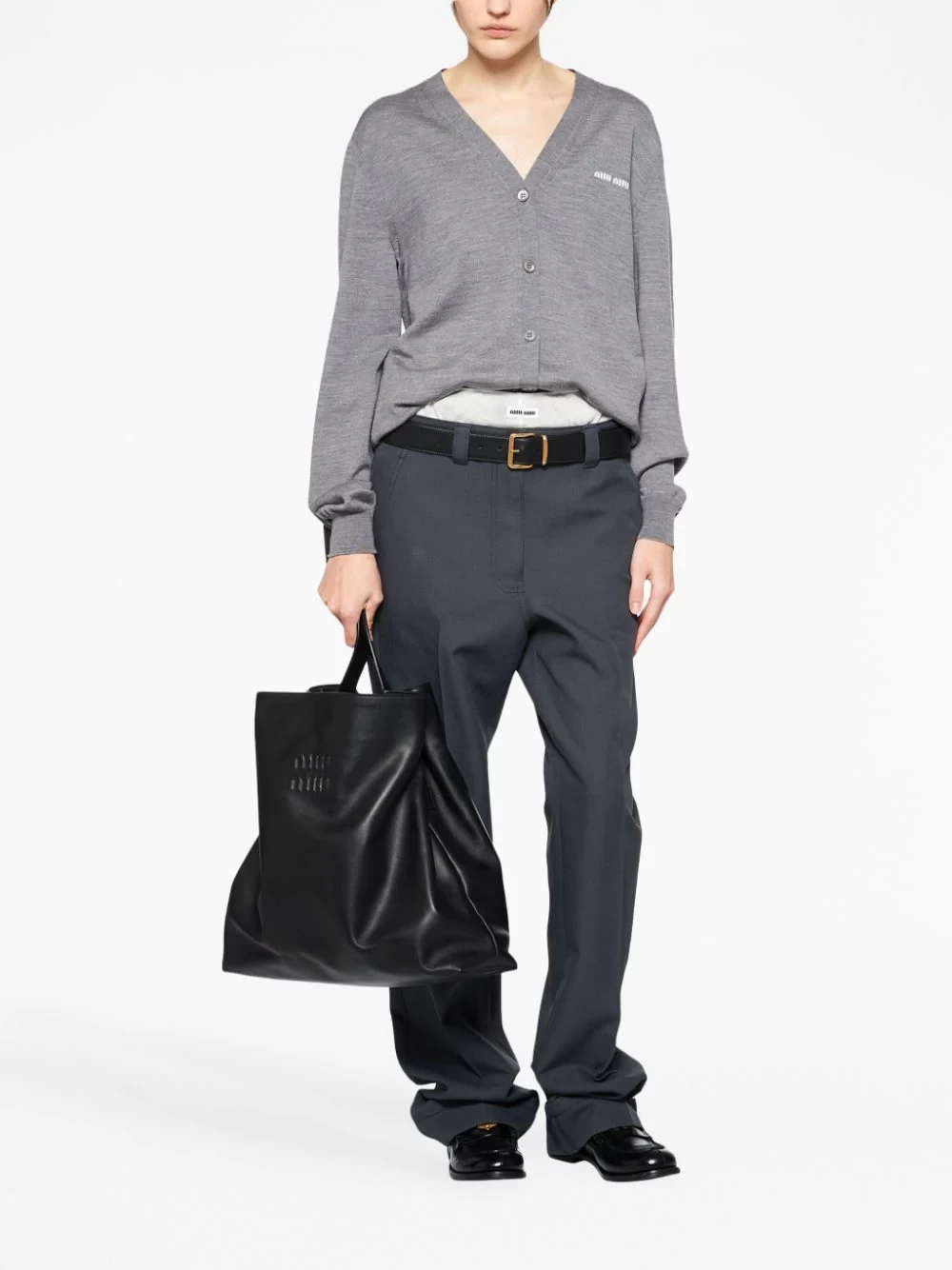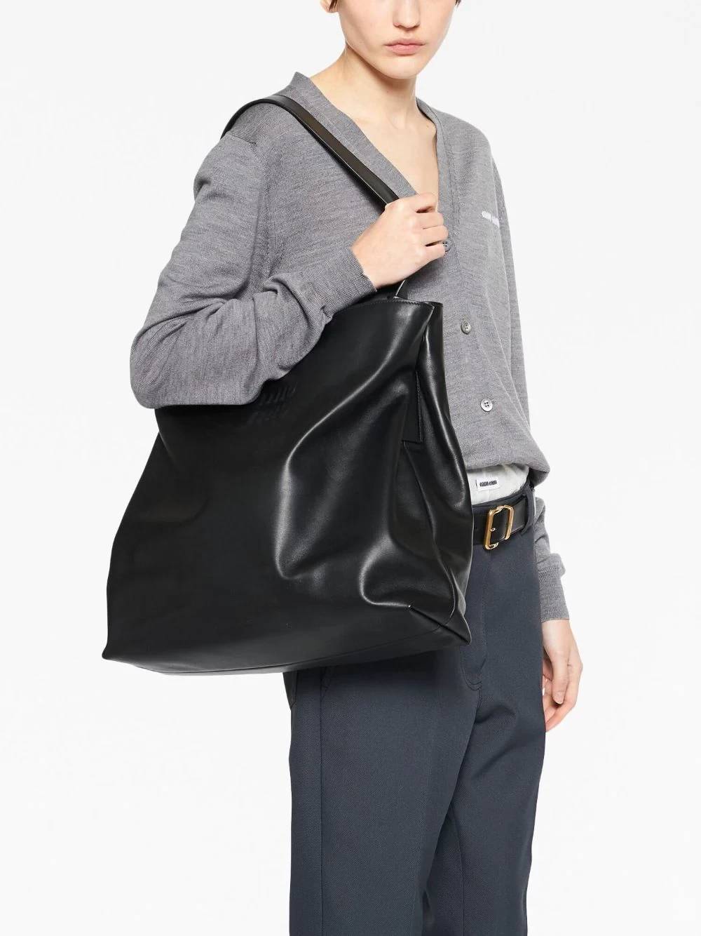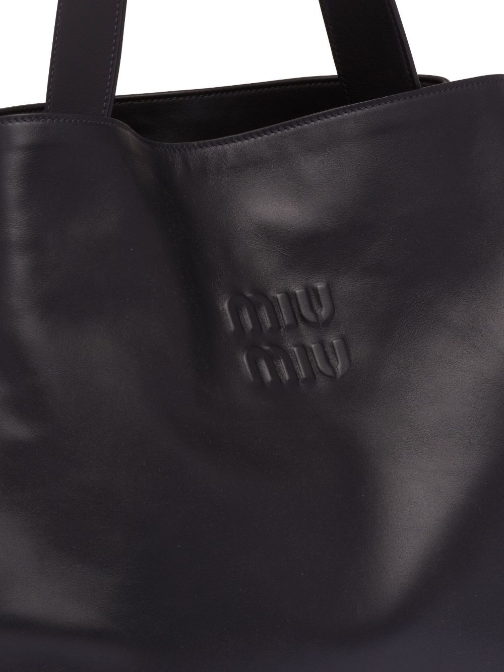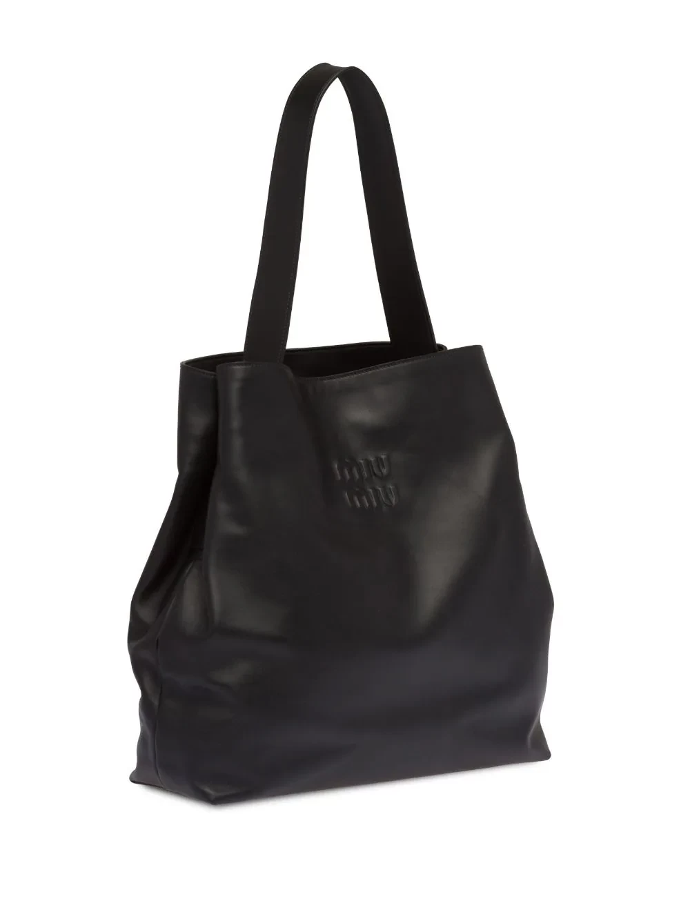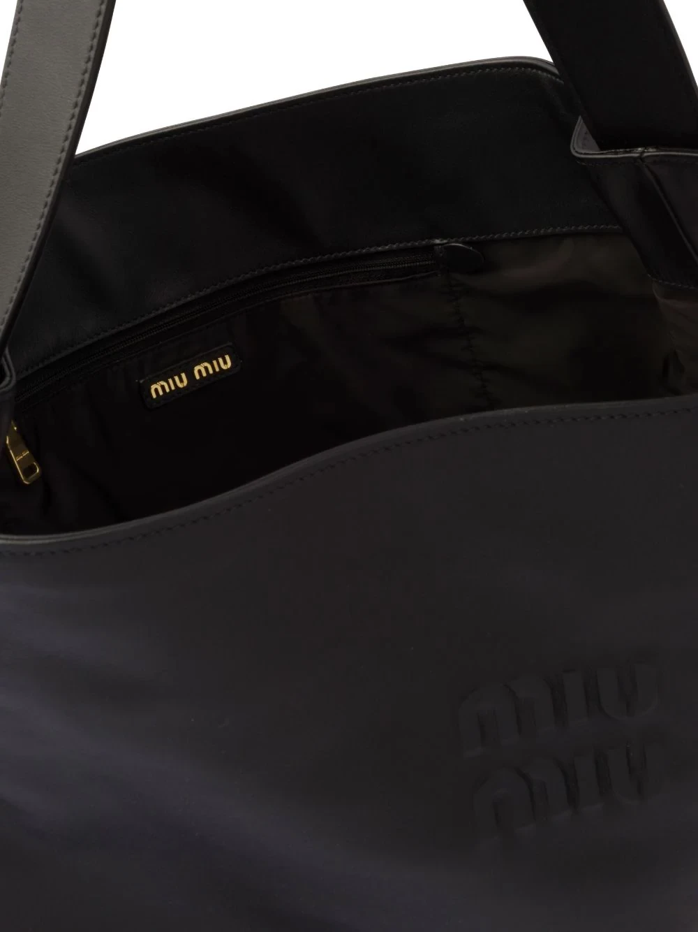 Miu Miu presents this shoulder bag with a sleek, functional design for SS23. Crafted from leather, in a black hue it features an embossed logo revealing refined artisan craftsmanship.